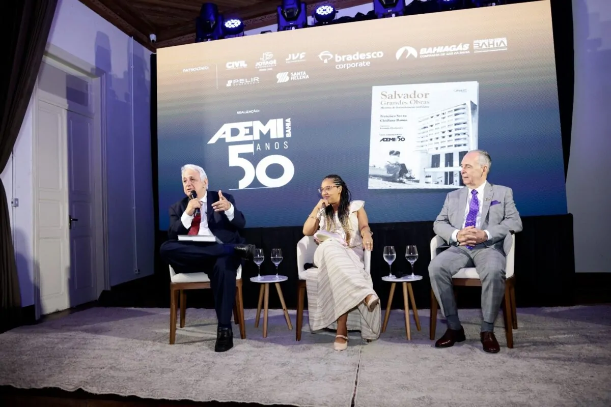 Comemorando 50 anos de trajetória, a Associação de Dirigentes de Empresas do Mercado Imobiliário da Bahia (Ademi-BA) apresentou, na última quinta-feira (30), o livro ‘Salvador – Grandes Obras’. O lançamento aconteceu durante coquetel exclusivo para convidados no Palacete Tira-Chapéu, em Salvador, reunindo autoridades, parceiros, patrocinadores e associados.
