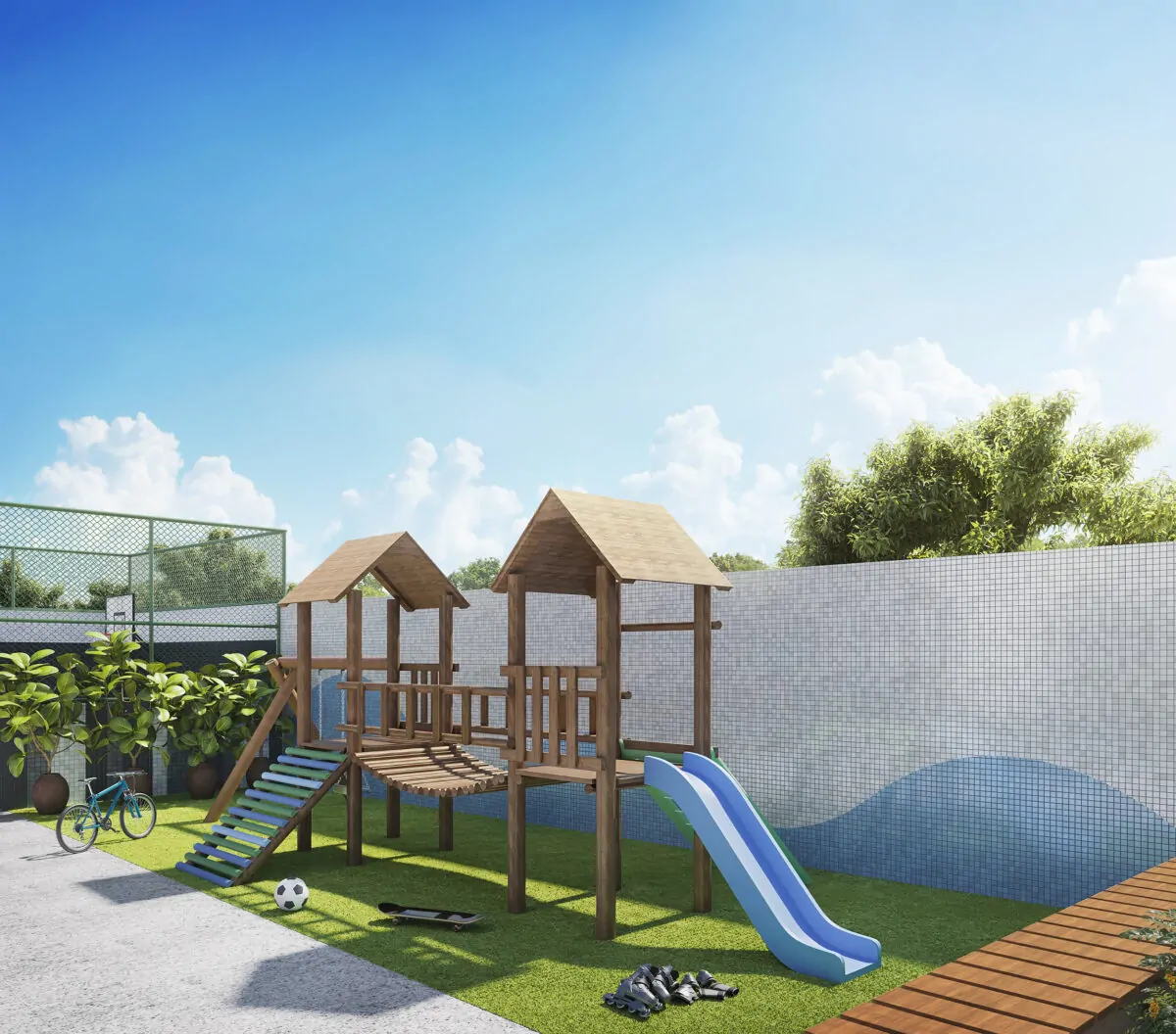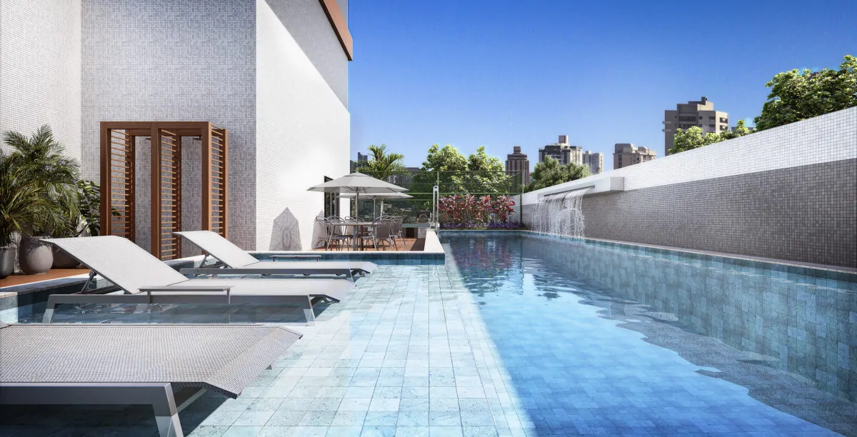 A área de lazer foi planejada para proporcionar experiências completas, com piscina com deck lounge, espaço gourmet com bar, academia, quadra poliesportiva, brinquedoteca e espaço pet, entre outros ambientes pensados para toda a família.