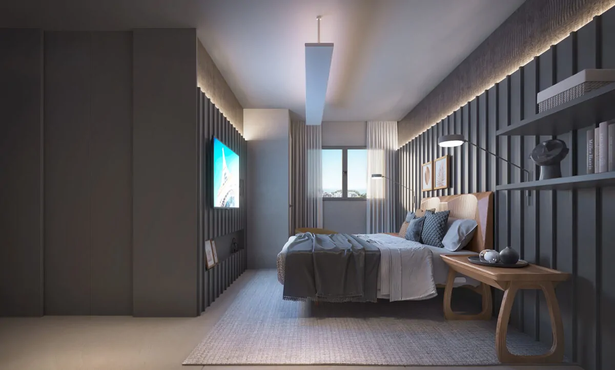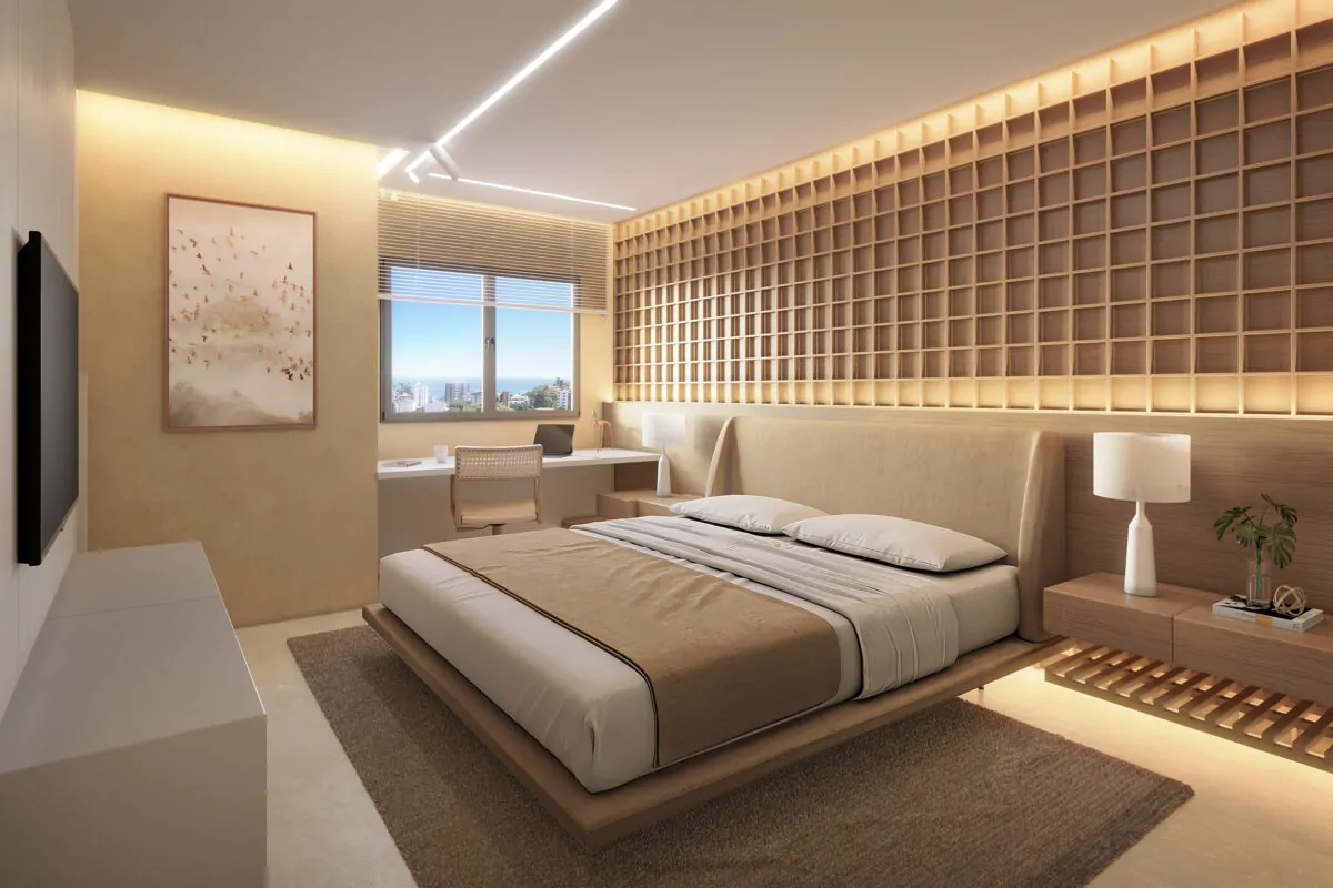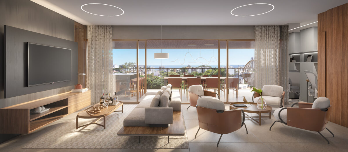 Os apartamentos terão 145 m², com 4 suítes, 3 vagas de garagem e posição 100% nascente. Além disso, contam com ventilação cruzada e excelente iluminação natural, reforçando o padrão de qualidade do empreendimento.