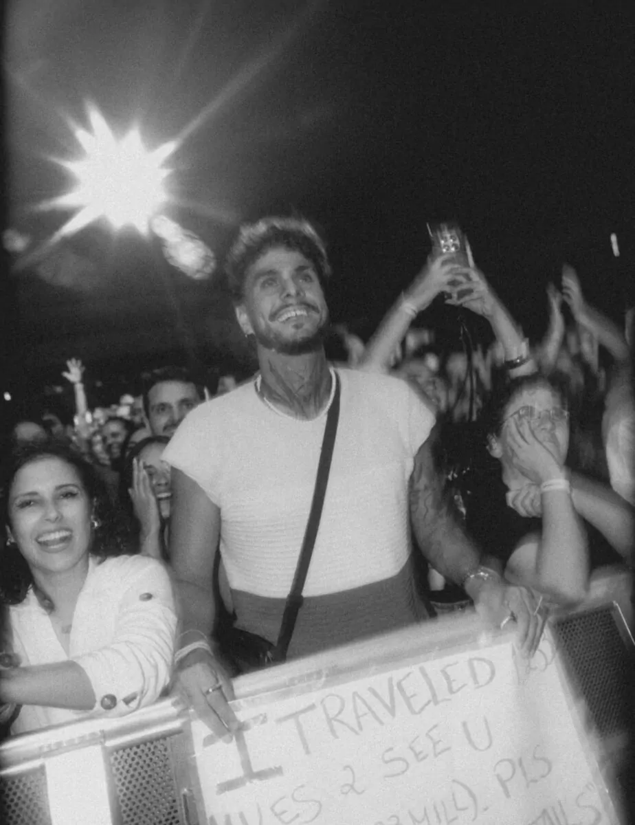Cantor e compositor, o artista baiano costuma compartilhar nas redes sociais apresentações e performances musicais e viveu no show um momento especial: sair da plateia direto para o palco ao lado de um artista internacional.