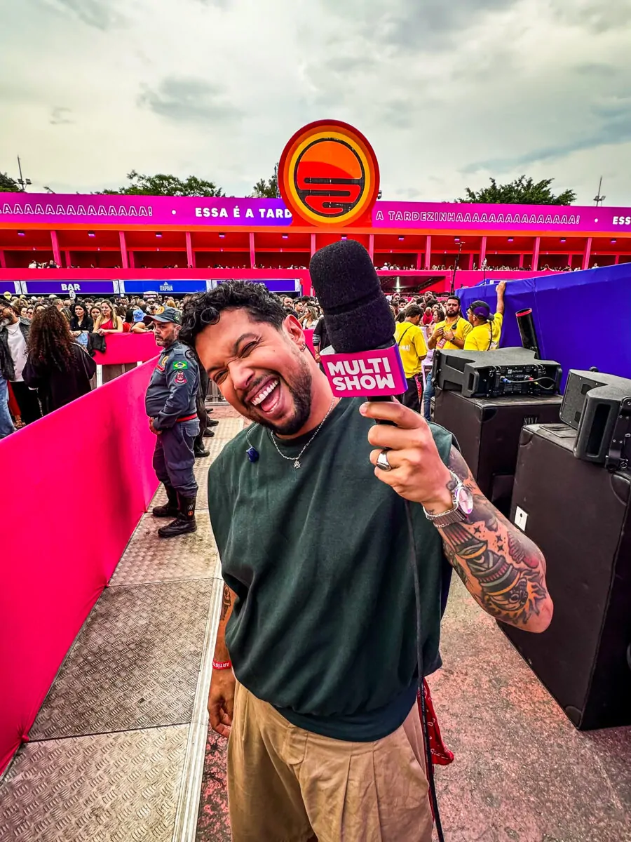 Desde agosto, ele foi responsável por mostrar os bastidores do projeto em cidades como Campinas e Natal, em transmissões feitas tanto em seu perfil quanto nas redes oficiais de A Tardezinha. “Com o tempo, a vida me deu sinais de que poderia confiar e acreditar. No sábado, vivi um importante ‘sim’: a confiança de um time que me levou ao maior festival de música do Brasil e, dessa vez, me fez viver a honra de transmiti-lo na TV dos sonhos”, afirmou Dinho.