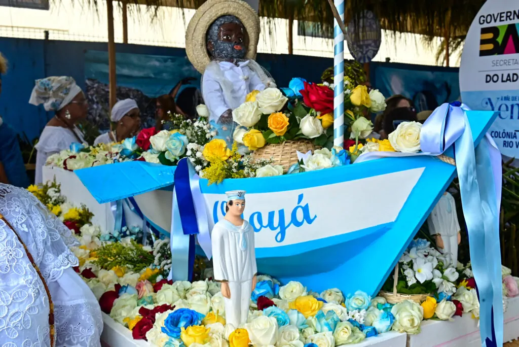Ainda na madrugada, uma alvorada de fogos marcou a chegada do presente principal à Colônia de Pesca Z1, responsável pela organização da festa junto à Prefeitura. No caramanchão, até as 16h, devotos depositaram oferendas em grandes balaios. Na areia, vestida majoritariamente de branco e azul, a ialorixá Jucilene dos Santos, 51, distribuiu bênçãos. “Vim trazer axé de paz, saúde e prosperidade. A festa é minha vida, Iemanjá é mãe de todos os orixás, logo, é também nossa mãe”, disse.