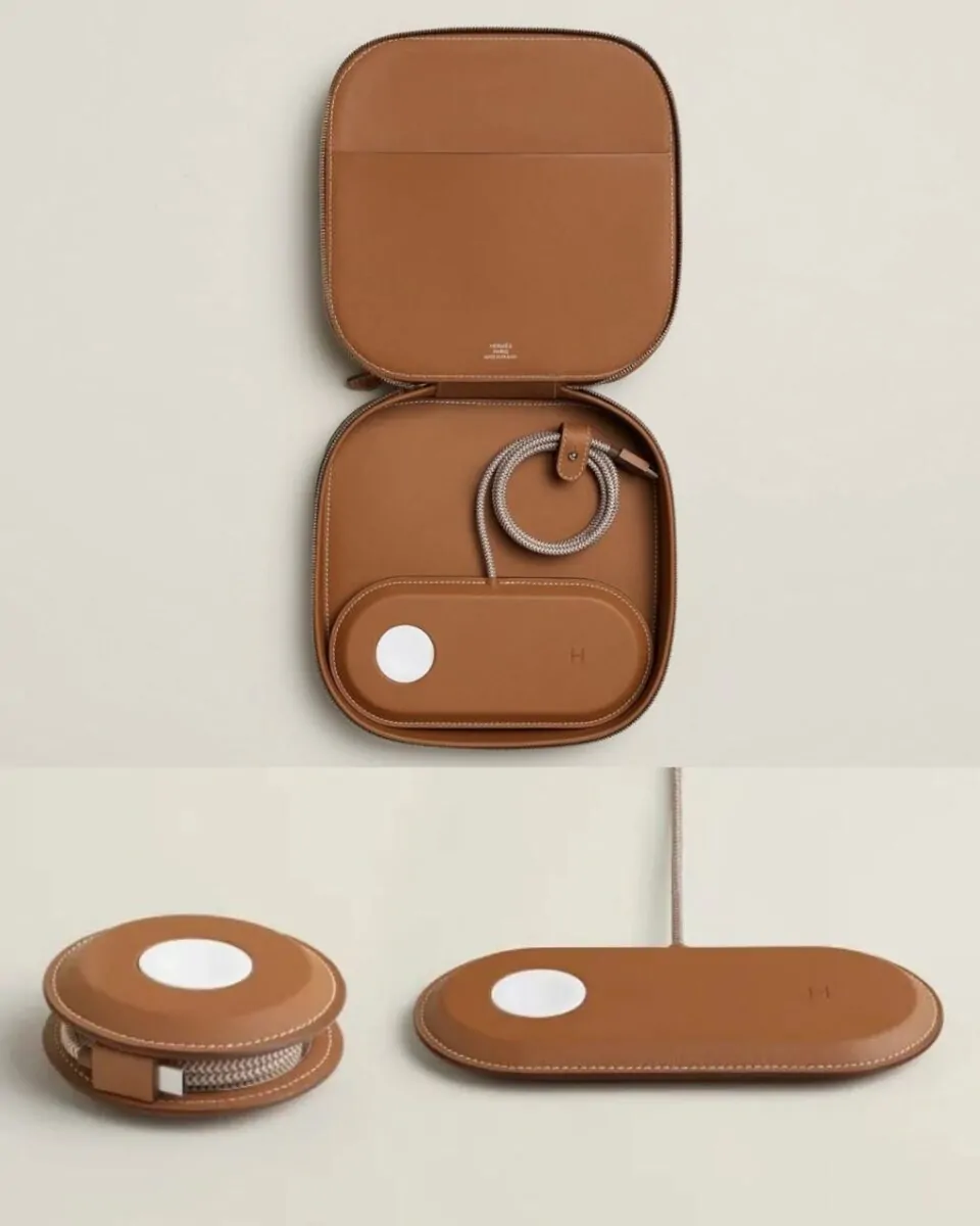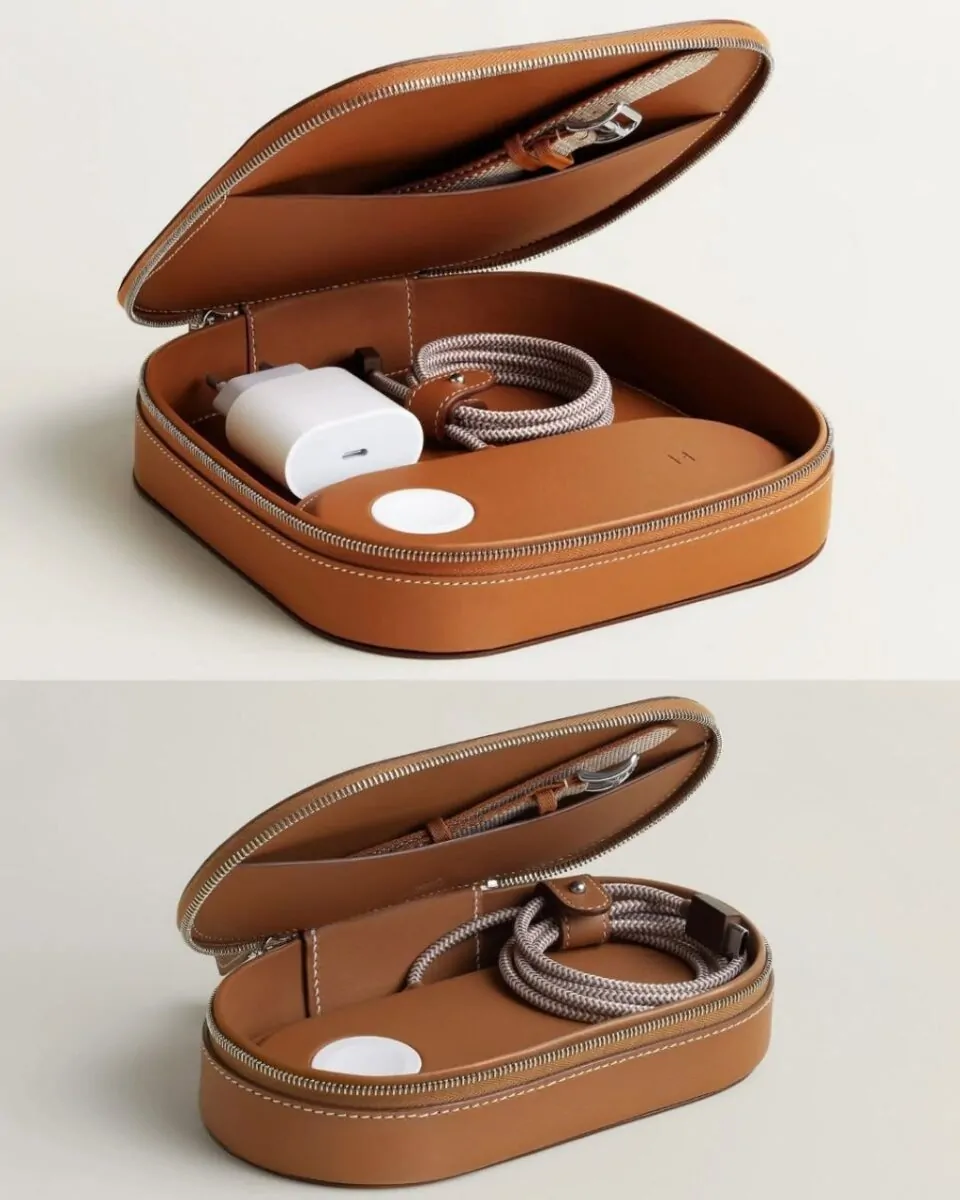 A Hermès apresentou uma nova linha de acessórios de carregamento desenvolvida em parceria com a Apple. A coleção transforma um item comum do cotidiano em objeto de luxo, com destaque para um carregador duplo revestido em couro premium, pensado não apenas como dispositivo funcional, mas também como peça de design.