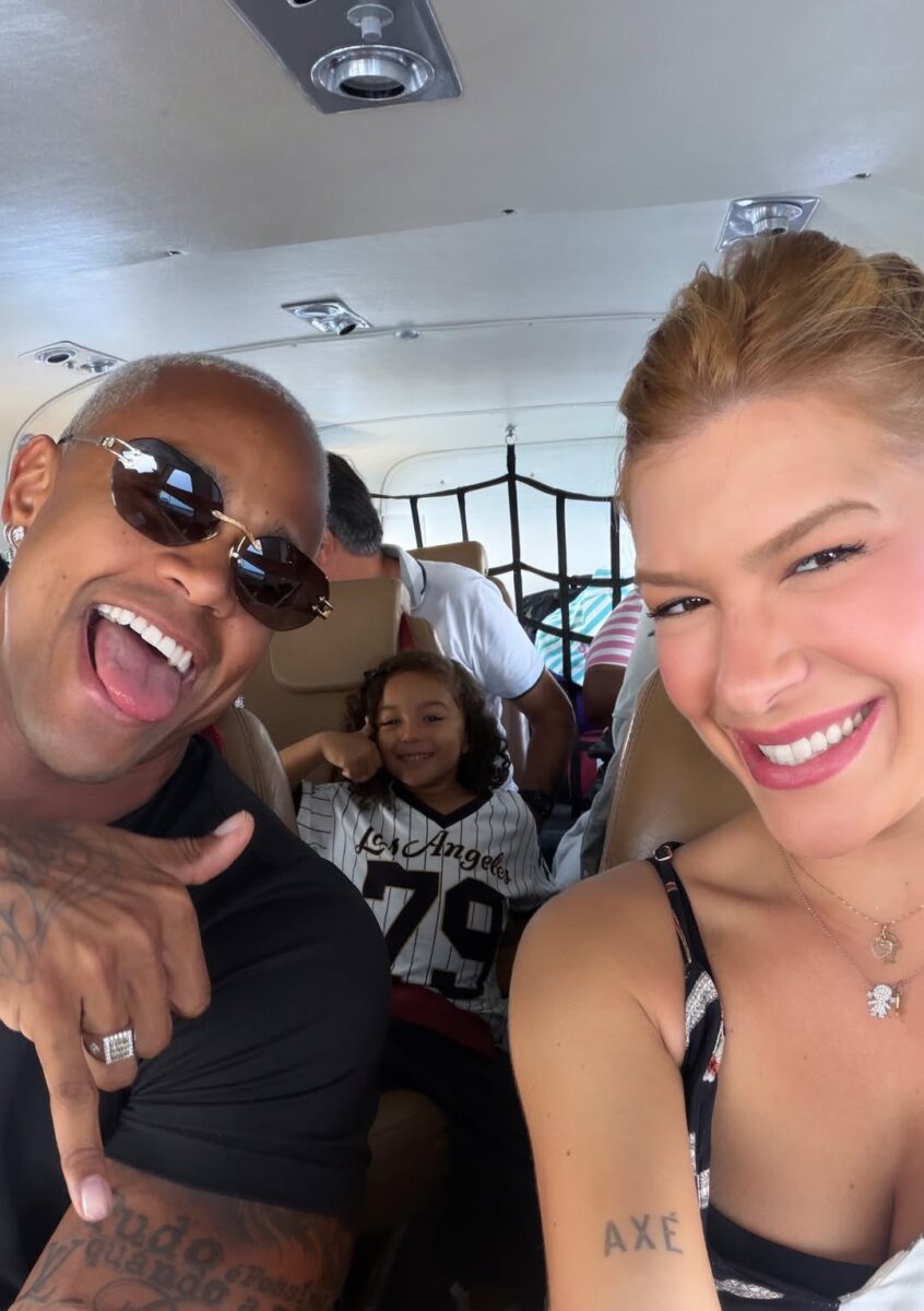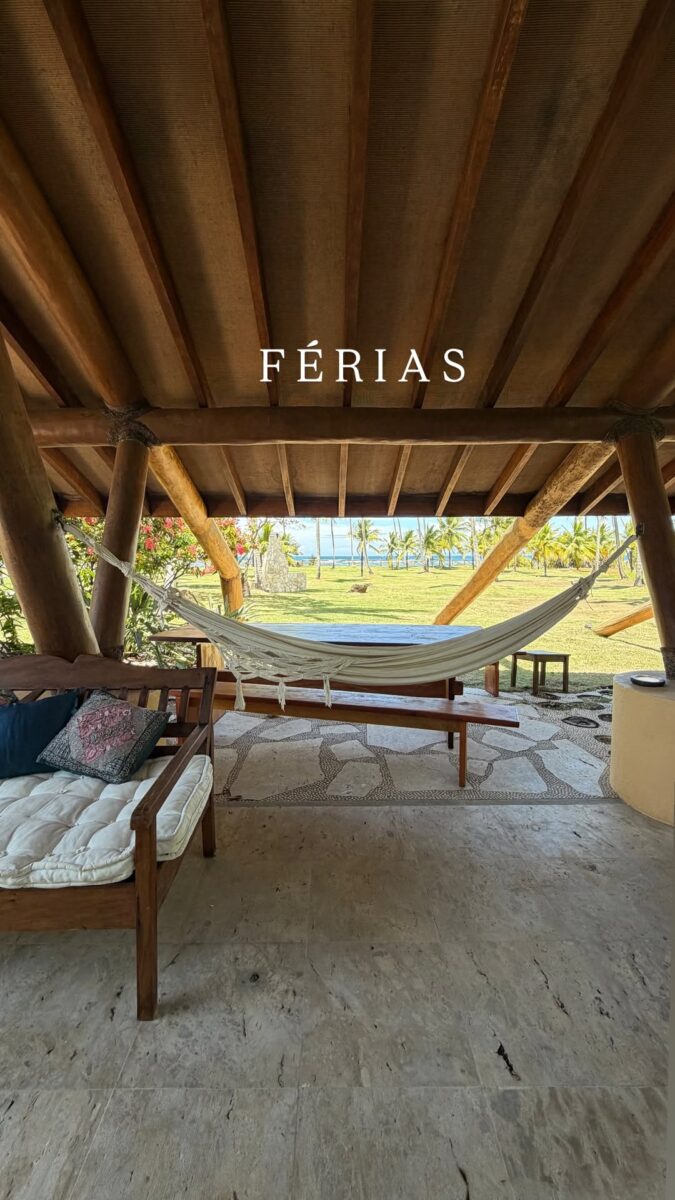 O casal está acompanhado da primogênita Liz e de amigos, enquanto aproveitam o final do verão baiano em clima de descontração. A Península de Maraú é conhecida por suas piscinas naturais, manguezais, praias paradisíacas e pelo charme da vila de Barra Grande.