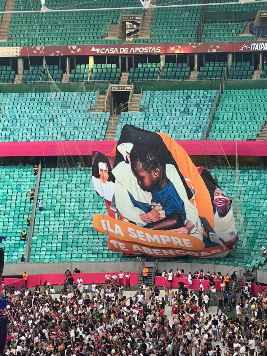 O cantor Thiaguinho é homenageado durante o show da turnê “Tardezinha”, neste sábado (25), em Salvador. A homenagem, promovida pela produção do evento em parceria com as Obras Sociais Irmã Dulce (OSID), destacou o encontro que o artista teve com Santa Dulce dos Pobres na infância, quando visitou a capital baiana com os pais e foi abençoado pela religiosa.